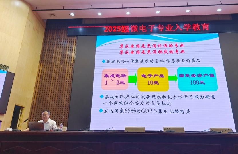 作者:文大东 摄影:文大东为帮助新生深入了解专业前沿、树立远大志向,9月24日晚,学院在图书馆一报告厅举办以“集成电路发展前沿”为主题的专题讲座。特邀国防科技…
