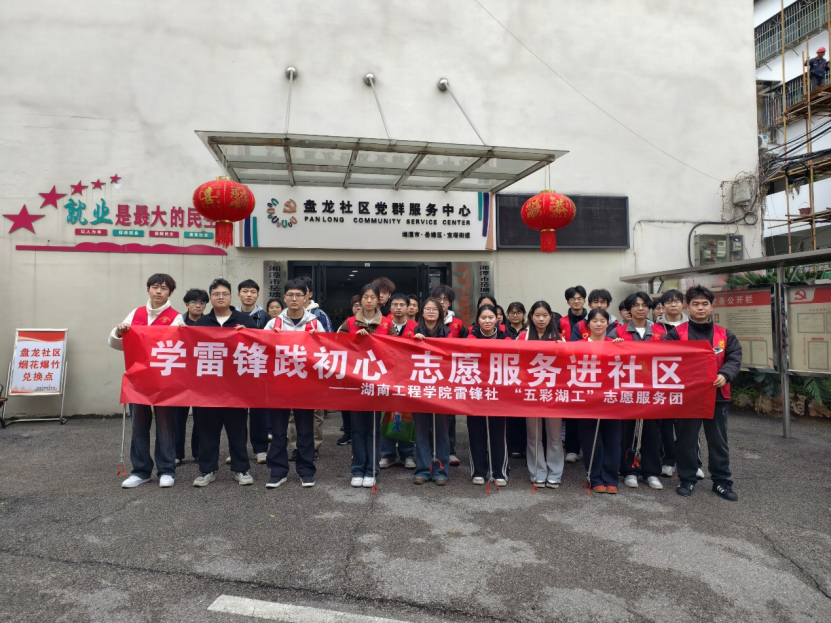 为大力弘扬雷锋精神,深化校社共建合作,3月17日下午,湖南工程学院雷锋社联合“五彩湖工”志愿服务团走进湘潭市盘龙社区,开展以“学雷锋践初心 志愿服务暖社区”为主题的志愿服务活动。志愿者们以多元服务践行志愿精神,用实际行动传递温暖,奏响校社联动的和谐乐章。