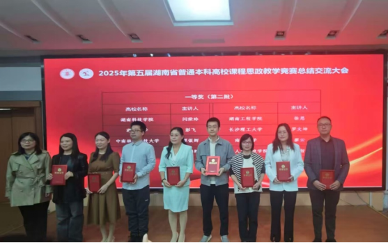 2025年10月18日至20日,由湖南省教育厅主办的第五届湖南省普通本科高校课程思政教学竞赛在湖南文理学院顺利举行。经过激烈角逐,我院徐思教学团队(成员:杨忠菲、王赛兰、吴童霞丽、王剑君)凭借出色的课程设计与现场表现,荣获理科农医组一等奖。这也是继夏文华、王赛兰老师之后,我院第三次斩获该项赛事的一等奖,充分展现了我院在课程思政建设方面的深厚积累与持续突破。