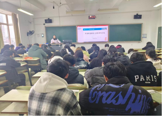 宣讲会上,杨俐围绕大学生创业政策、赛事平台、孵化支持、实践路径等内容展开讲解。她结合学校创新创业工作部署与省级创业扶持政策,重点解读了创业补贴、孵化基地入驻、赛事激励、学分认定等实用信息,用贴近学生的语言拆解政策要点,让同学们听得懂、用得上。她鼓励学生立足专业优势,早规划、敢尝试、善创新,把专业所学转化为创新动能,在校园里种下创业梦想的种子。